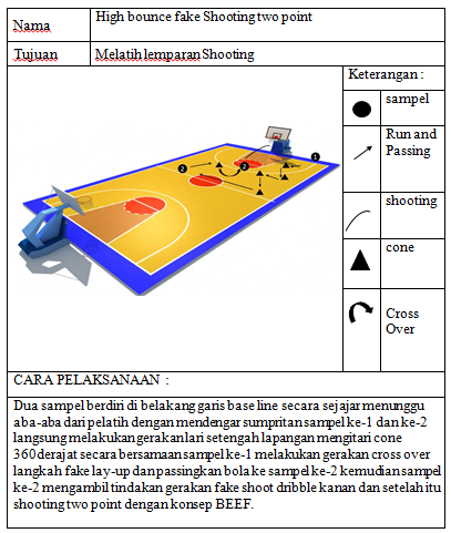Penelitian pengembangan ini menghasilkan sebuah produk model latihan medium shoot pada permainan bola basket dengan menggunakan metode latihan drills yang berhubungan kepada keterampilan akurasi shooting yang terdiri dari satu model sebanyak 10 bentuk model latihan medium shoot dengan teknik konsep BEEF.
